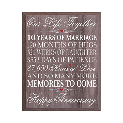 10th Wedding Anniversary Wall Plaque Gifts for Couple, 10th Anniversary Gifts for Her,10th Wedding Anniversary Gifts for Him 12 Inches Wide X 15 Inches Plaque By Dayspring Milestones (Salt oak)