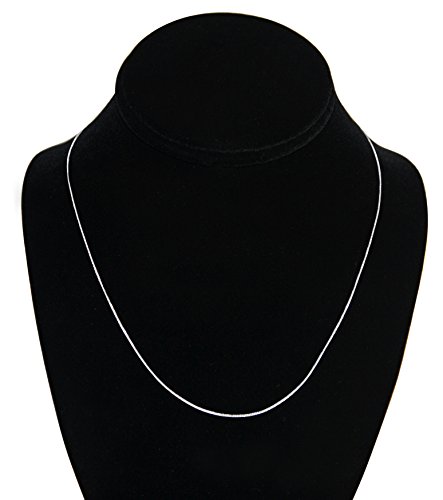 Timeless elegance in solid 14K white gold. This fine gauge .60mm thick 18 inch box link chain is known for it's link strength and beautiful sheen encircling the neck, ending in a spring clasp. It appears delicate, but is amazingly sturdy enough for daily wear. A lifetime piece for your gold jewelry collection, made of SOLID 14K gold, not plated or filled. This beautiful necklace is elegantly presented in a black cotton-filled box, a perfect gift for yourself or a loved one.