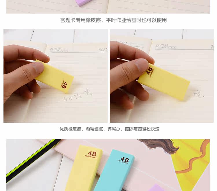 学生绘图考试高去污彩色4B橡皮绘图橡皮擦素描文具铅笔擦