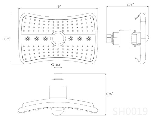 AKDY AKSH0019 Bathroom Multi-Function Rainfall Style Bathroom Jet Nozzle with Water Saving Shower Head, 9"