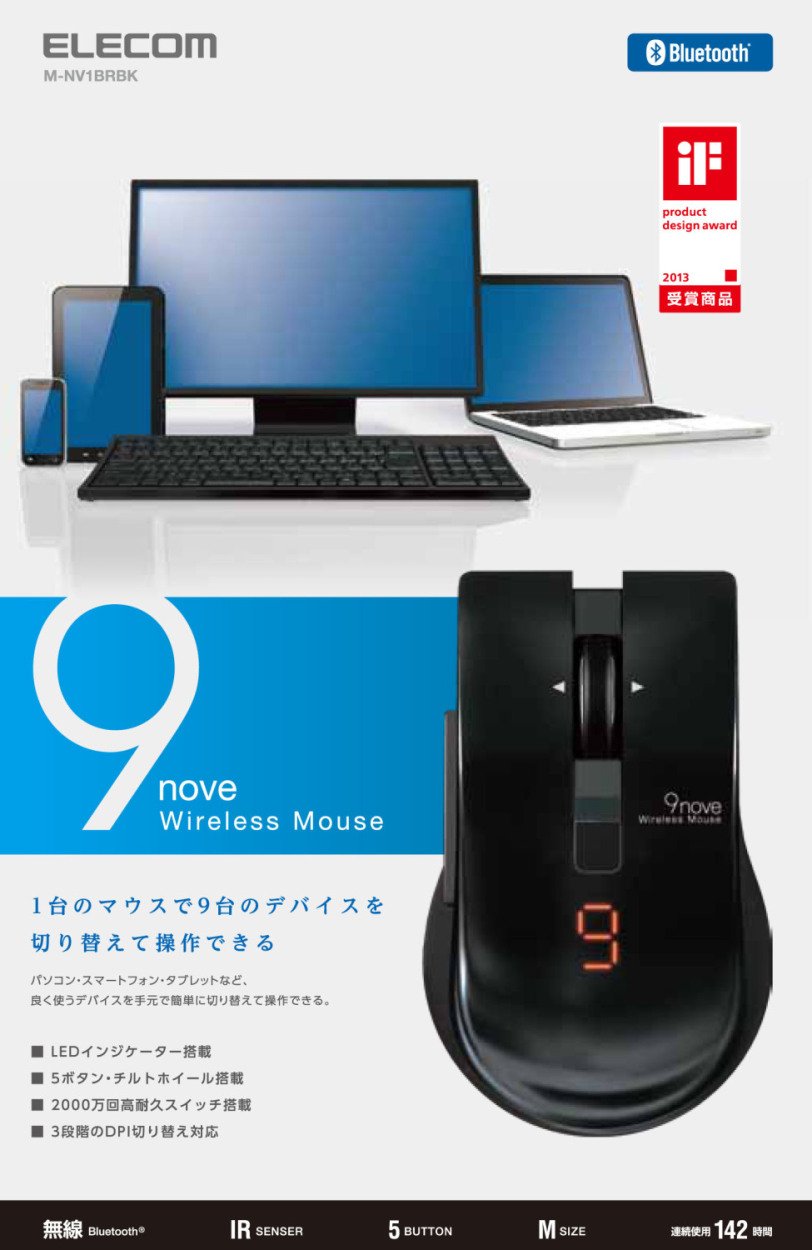 Elecom Bluetooth 3.0 Mouse M-NV1BRBK 5 button 9 IR switching Black EWM-I20 Import JPN