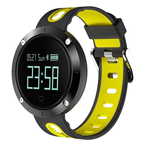 -. Feature : IP67 waterproof sports smart bracelet: professional waterproof IP67, free of swimming under 1.5 meters, but no hot water. / Exquisite Occident sports style : 0.95 inch OLED high definition touch screen, scratch-proof pure aluminium case, tempered glass lens, soft silicone strap. / Bluetooth 4.0 compatiable for android and ios, call SMS push information, Twitter, Facebook, Whatsapp, Skype message alert. Remote Camera and Find a phone. / Sports and health care: Blood pressure monitor, 3-Lights heart rate monitor ,step counter, calories consumed, distance, sleep monitor, sendentary reminder / More functions: screen light via hands up, Extra large battery , clock