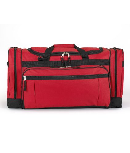 Studio : UltraClub Publisher : UltraClub Product Description UltraClub Large Duffel Bag Duffle Bag: This is the kind of baggage that you want to hold onto for years to come; 600-denier polyester; u-shaped main compartment opening; large side zip pockets; large front gusset pocket; adjustable and detachable padded shoulder strap; padded self-adhesive fabric handle wrap ; 12 3/4"w x 5 1/4"h approx. imprint/embroidery area (front); 8"w x 6"h approx. imprint/embroidery area (side ends); Sizes: 27"w x 13"h x 14"d. Care: Spot Clean only 0