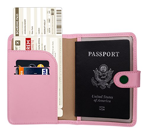 -. Feature : Polyurethane and Faux Buck Leather / ECO-Friendly Material meets EU REACH Quality Standard, US EN71 and US CA Prop 65 Test / Snap Button Closure, 1 Passport Pocket, 2 Card Slots, 1 Wing Pocket for tickets and Boarding Pass / RFID Security, Protect your personal information safe with inside Rfid blocking shield material under frequency 13.56MH, prevents E-thefts unauthorized access to your P.R.Ivacy / Bright Color Cover, measure 5.9" x 3.9" x 0.6" inches, Lightweight and Slim Protect case