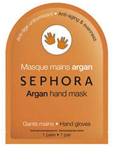 -. Feature : SEPHORA COLLECTION Hand Mask in Argan - Anti-aging & Eveness / A line of hand care treatments, each with a different benefit, that offers 15 minutes of pure bliss. / Inspired by Asian beauty rituals, the Sephora Collection hand masks provide an effective solution to meet every need. The single pair of non-drip, coated gloves will take care of your hands as you continue what you're doing. Each offers a skin-enhancing benefit. / Argan Hand Mask: Provides hands with a more even skintone for an antiaging effect. / 1 Pair -Single use