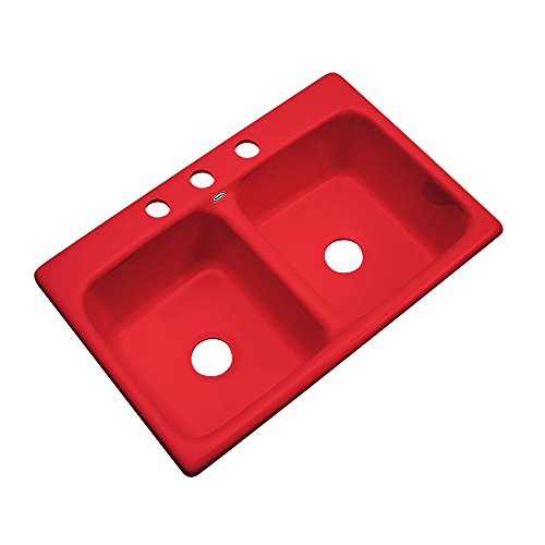 Dekor Sinks 50364 Westport Double Bowl Cast Acrylic Kitchen Sink-3 Hole, 33", Red