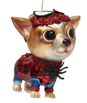 December Diamonds Blown Glass Ornament - Superhero Spider Chihuahua Dog