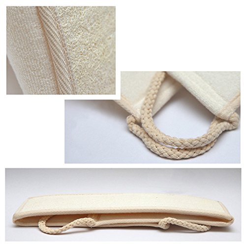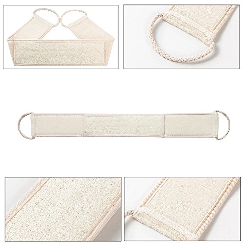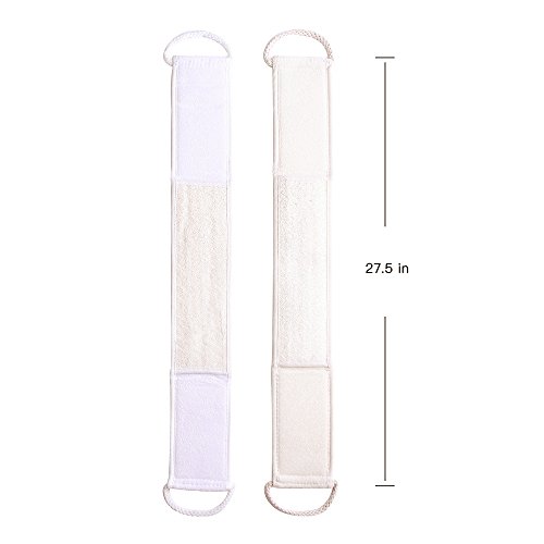 • TWO SIDED TECHNOLOGY -- 13" x 4" Loofah sponge, natural loofah deeply exfoliates while revives lifeless skin; 36" x 4" back scrubber,flip over ultra soft bamboo fiber cloth gently polishes your body for a silky-smooth finish. Uses it and you will feel the difference.