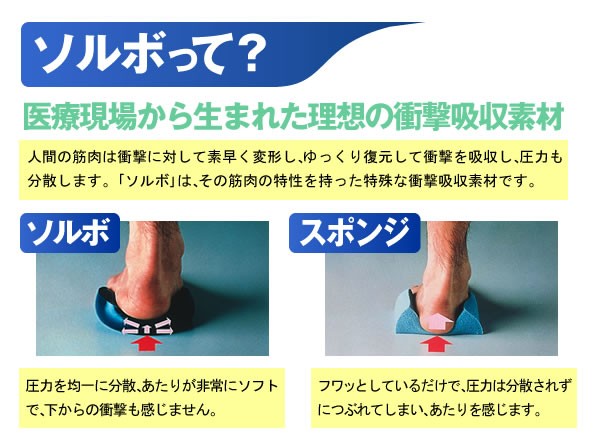 医療現場から生まれた理想の衝撃吸収素材「ソルボ」!そんなソルボがあなたのかかとのブレを押さえ、足、ひざ、腰の疲れを和らげます!メッシュ編みなので、通気性も抜群!ムレも防ぎます。ソルボがあなたの快適歩行を強力サポート!
