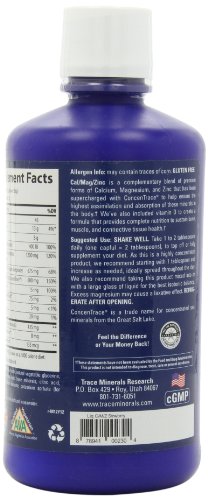 -. Binding : Health and Beauty -. Brand : Trace Minerals Research -. Label : TRACE MINERALS RESEARCH -. Manufacturer : TRACE MINERALS RESEARCH -. PackageQuantity : 1 -. ProductGroup : Health and Beauty -. ProductTypeName : HEALTH_PERSONAL_CARE -. Publisher : TRACE MINERALS RESEARCH -. Studio : TRACE MINERALS RESEARCH -. Title : Cal/Mag/Zinc Liquid