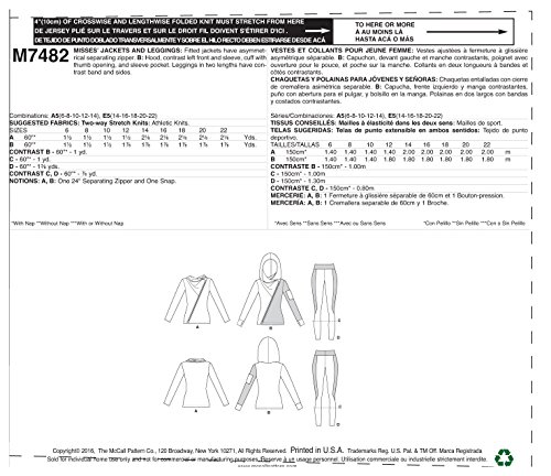 -. Feature : MCCALLS M7482 Misses' Asymmetrical-Zip Jacket and Seamed Leggings SEWING PATTERN / SEWING PATTERN / SIZE 6,8,10,12,14