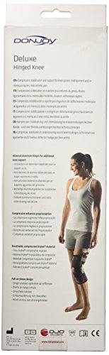 -. Binding : Health and Beauty -. Brand : DonJoy -. Feature : More true to size than older model / Lower profile hinge design / Polycentric hinge provides for extension stops: 10 installed / Additional stops available (extra charge applies) / Available with or without open back -. Label : DONJOY -. Manufacturer : DONJOY -. MPN : PGID_414 -. PartNumber : PGID_414 -. ProductGroup : Health and Beauty -. ProductTypeName : HEALTH_PERSONAL_CARE -. Publisher : DONJOY -. Studio : DONJOY -. Title : DONJOY Deluxe Hinged Knee Brace Sleeve