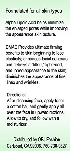 -. Feature : Recently on the Dr Oz program featured DMAE+Alpha Lipoic Acid for Skin Care Application. The combination of DMAE and Alpha Lipoic Acid Firming Toner restores skin's pH balance, restores skin collagen/elastin, improve firmess and minimizes enlarged pores. / DMAE: Dimethylaminoethanol: An amazing nutrient that extends the life of cells, inhibits the cross linking of proteins, which provides ultimate firming benefits to skin beginning to lose elasticity; enhances facial contours and delivers a "lifted," tightened, and toned appearance to the skin; diminishes the appearance of fine lines and wrinkles. / Alpha Lipoic Acid, also referred to as the universal antioxidant, is capable of protecting all portions of the skin's cellular structure and boost the activity of all other antioxidants. / Allantoin has anti-inflammatory property that can soothe irritated skin as well as help reduce redness. It also has skin protection and anti-irritant properties to help prevent skin irritation and breakouts. / Made in the U.S.A.