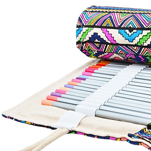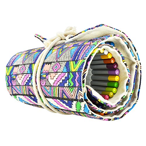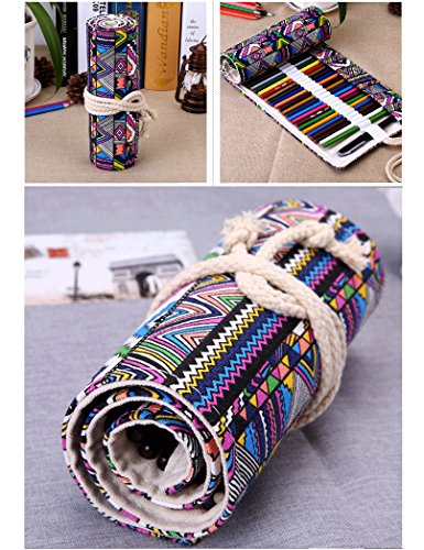 Minhe 72-colored Pencil Roll-Up Canvas Pencil Wrap - Ethnic Style (Pencils are not include)