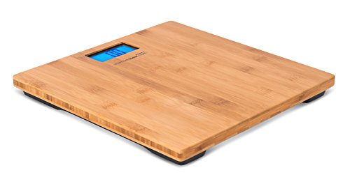 -. Binding : Health and Beauty -. Brand : Internet's Best -. Color : Natural -. EAN : 0667031416950 -. Feature : NATURAL TEXTURE & LOOK: made from real bamboo giving you a functional, yet beautiful touch to your bathroom. The natural bamboo gives your feet a soft and smooth surface to stand on instead of the cold and hard surface of glass or metal scales / EASY TO SEE LCD: features a large 2.91" x 1.4" LCD display with a blue backlight making it easier to see your results / 4 HIGH PRECISION SENSORS: built with the 4 high strain gauge sensor system giving you an accurate weight. (Place scale on a flat, hard surface for accurate results) / AUTOMATIC ON/OFF: scale only turns on when you step on the scale (auto zero). Automatically turns off once you step off saving battery life / WEIGHT CAPACITY: 400 LBS. Dimensions: 11.8" W x 11.8" L x 1.25" H. Includes 2 AAA Batteries -. Label : Internet's Best -. Manufacturer : Internet's Best -. ProductGroup : Health and Beauty -. ProductTypeName : HEALTH_PERSONAL_CARE -. Publisher : Internet's Best -. Studio : Internet's Best -. Title : Internet’s Best Bamboo Digital Body Weight Scale | Bathroom Accessories | Real Bamboo | Eco Friendly | Wood Décor | Blue LCD Backlight | 400 lbs. Weight Capacity -. UPC : 667031416950