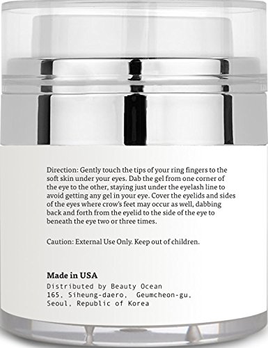 Studio : Beauty Ocean Publisher : Beauty Ocean Binding : Misc. Product Description Are You suffering from Dark Circles, Puffiness Tired Looking Eyes? Moisturize and Hydrate Dry Under Eye Skin While Fighting Signs Of Aging. Use Day and Night to Reveal A Brighter and Younger Looking Skin. Also, Our Eye Gel helps Reduce Puffiness, Dark Circles, Under and Around the Eyes.Moisturize and Hydrate Dry Under Eye Skin While Fighting Signs Of Aging. Use Day and Night to Reveal A Brighter and Younger Looking You. Enjoy secret beauty item you only know. Good product, Customer satisfaction 0 |