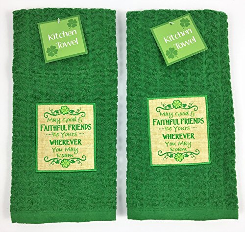 St. Patricks Day Kitchen Dish Towels Set of 2 Faithful Friends 100% Cotton New