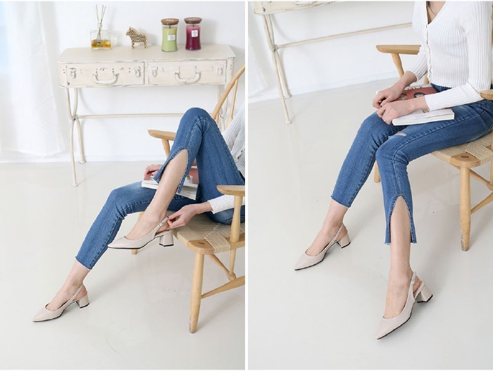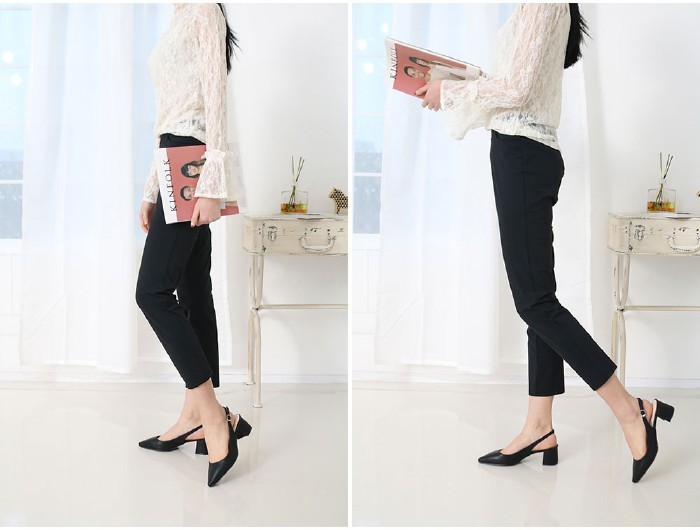 商品名:パンプス レディース ポインテッドトゥ スリングバック 太ヒール チャンキーヒール 2018 春 ファッション 靴 婦人靴