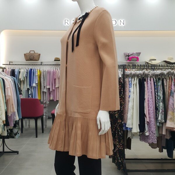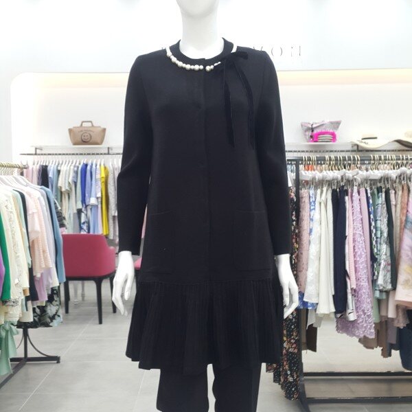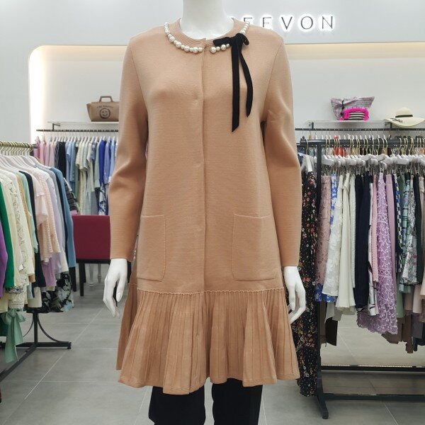 네크에 진주와 리본 장식이 있는 하프코트형 가디건입니다~