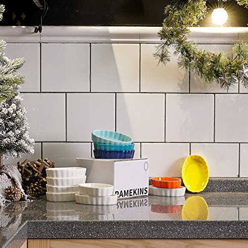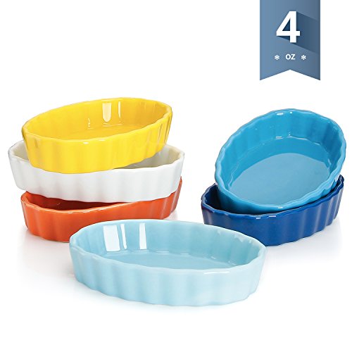 With this shallow dishes, you could have more options for kitchen preparation! ▶ The 4 ounce ramekins, depth 1 inch. Just the right size for creme brulees, baked mac, small desserts, side dishes, dipping sauces. ▶ Wavy edges allow you to put these cream brulee dishes into the oven with more comfortable grip, worry free about slipping. And the wavy edge makes these ramekins look more fashionable and help you to better match your dessert. ▶ Dishwasher safe and easy to clean by hand if needed. They are safe for freezer, microwave, and oven as well. If you need other shape of ramekin... 4 ounce ramekin - oval shape is a perfect size for creme brulee. If you need other shape ramekin, don't worry! Sweese also provides the 5 oz ramekin with the round shape. .Best Gift Option. They are packaged in a well wrapped box, a perfect gift for your friends and family on Housewarming, Wedding party, Mothers' Day, Fathers' Day, Christmas and New Year's Day. YOUR CONFIDENCE ASSURED - PEACE OF MIND GUARANTEE ? 30 Day No-Chip Warranty ? 100% Satisfaction Guarantee SEARCH NO MORE - YOU HAVE COME TO THE RIGHT PLACE Add the Sweese 5102 Porcelain Ramekins to your cart now! 0 |