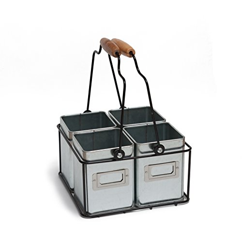 As many uses as you need Sturdy and well designed, the Kenley tin cup set is made from galvanized steel. It won't rust or decay so you get creative with confidence. For example, you could fill it with herbs and hang it in a sunny kitchen corner, fill it with homework supplies for the kids or make a luxury drinks pod with your favorite coffee, teas and hot chocolate ingredients. It fits in with almost any decor, so if your life changes just pick it up and move on: swap out, teas for make up, art supplies for power cables, spices for screwdrivers and tools: whatever you need to stash, the Kenley tin caddy keeps it on hand and easily portable. The caddy is about 9x9x5.5in. 0