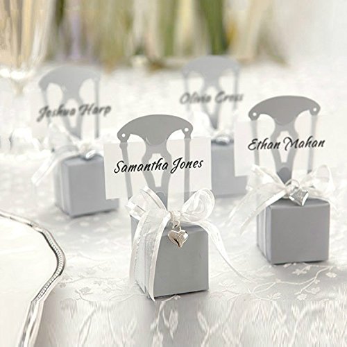 Xin store Miniature Silver Chair Candy Favor Boxes with Heart Charm and Ribbon for Wedding Party, Pack of 50