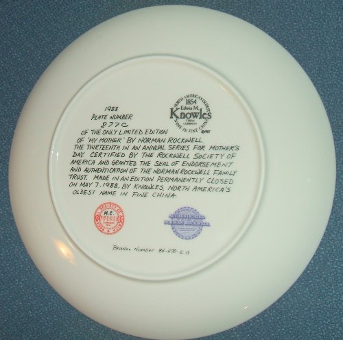 Norman Rockwell: “My Mother” Rockwell’s Mother’s Day Collection--Authentic Registered Collector Plate