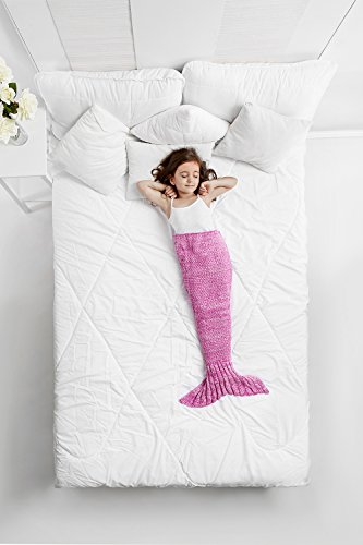 Knit Mermaid Throw Blanket Sleeping Bag Sleep Sack For Little Kids Teens Adults (35.4”X19.7”, persian rose (for toddlers and preschoolers))