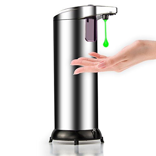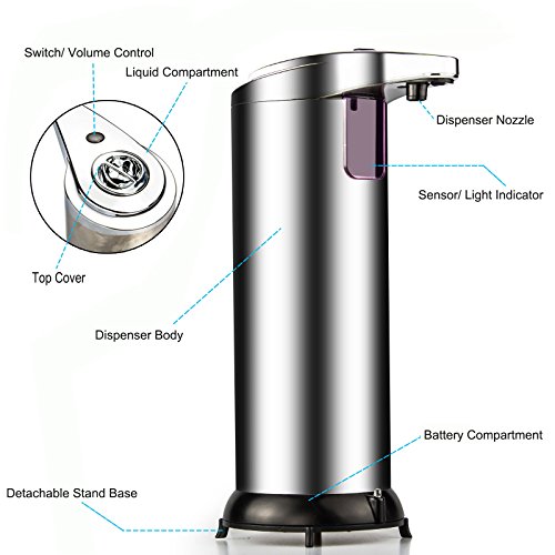 - SLEEK, MODERN DESIGN - Sleek & Elegant brushed nickel stainless steel and fingerprint resistant, Waterproof base helps to prevent the battery compartment from getting soaked in water which causes corrosion and the dispenser fail to operate.