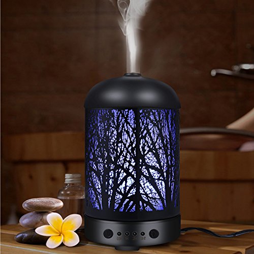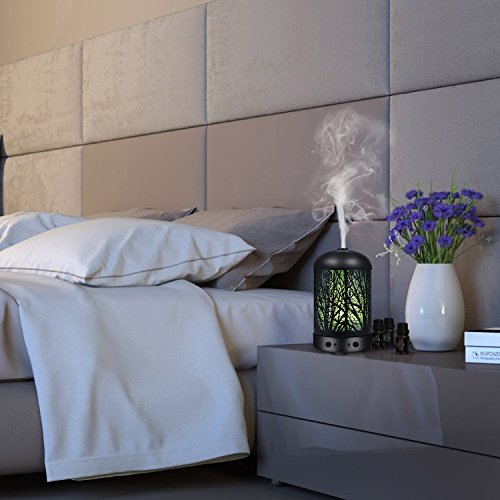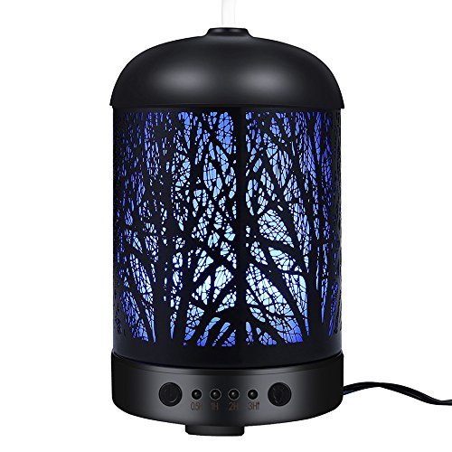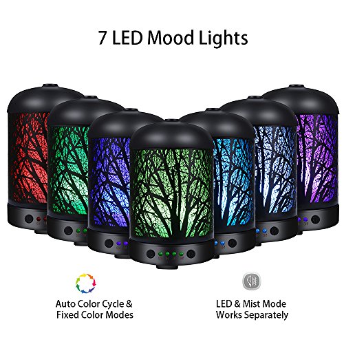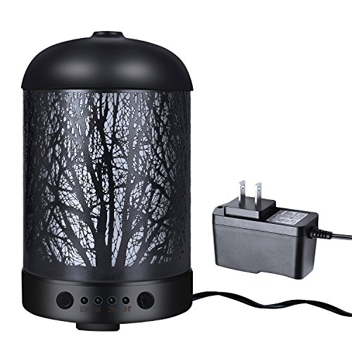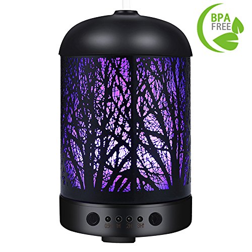 COOSA Genuine Unique Enchanted Forest Designed 100ml Ultrasonic Aromatherapy Essential Oil Diffuser US Plug Standard Cool Aroma Mist Humidifier with LED Light for Home and Office (Black)