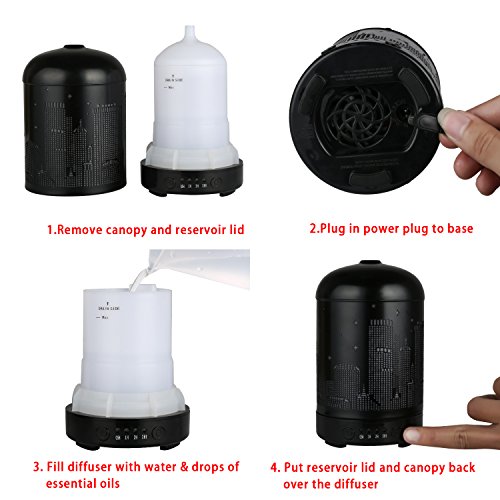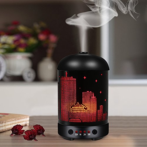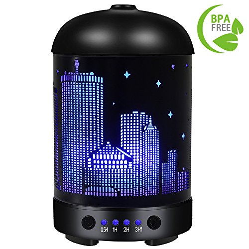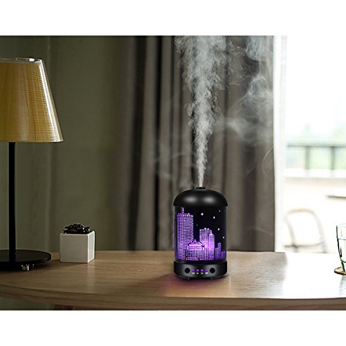 COOSA Empire State Building Designed 100ml Ultrasonic Essential Oil Diffuser Aromatheraphy Cool Mist Humidifier with Colorful LED Light for Home Office Living Room Yoga (Black 1)