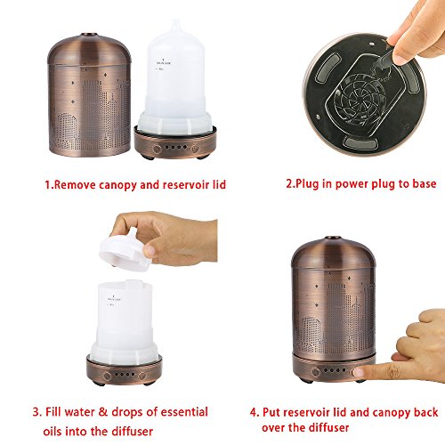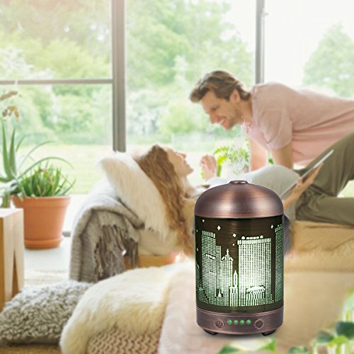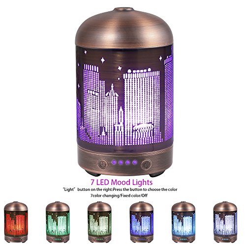 COOSA 100ml US Plug Standard Ultrasonic Oil Diffuser, Empire State Building Aroma Mist Humidifier with Colorful LED Light Great for Home Office Baby Living Room Yoga Spa (Copper 1)