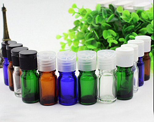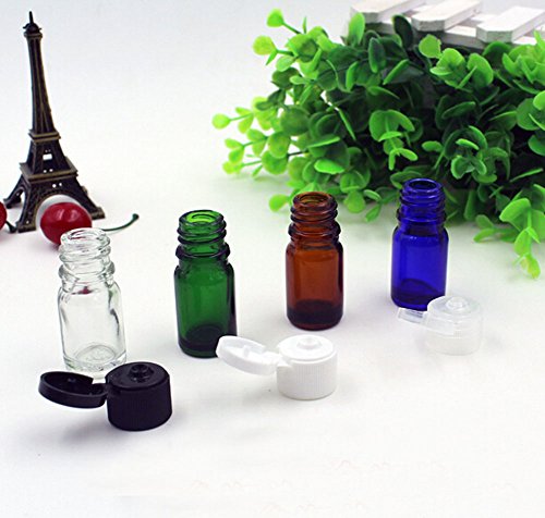TOPWEL 5ml 6PCS Refillable Glass Essential Oil Bottle with Plastic Flip Top Lid (Brown)