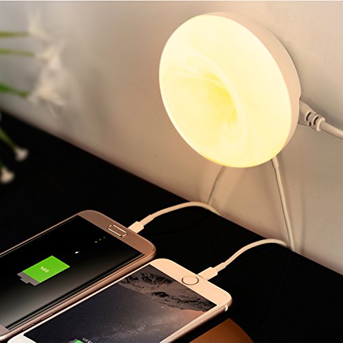 2-in-1 Design, this desktop USB charger not only fast charges two devices of your iphone, Samsung smart phones, tablets (5V/2.4A Max Output), also works as a LED night light.