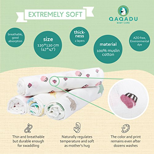 ✅ INCREDIBLE SOFTNESS: 100% organic muslin cotton make those swaddles so soft, you won’t be able to hold back a few “Ah!” and “Oh!” when touching it. It’s the perfect fabric for sensitive and tender baby skin.