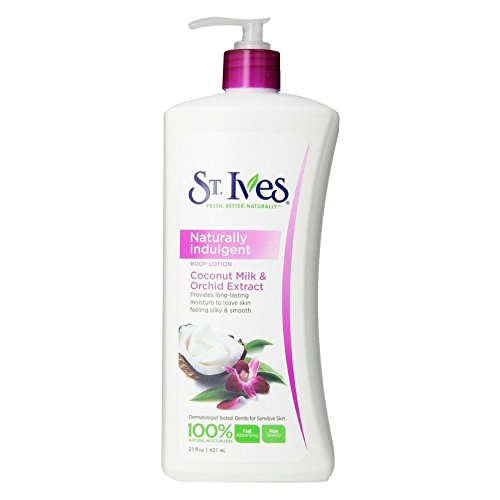 -. Binding : Misc. -. Brand : St. Ives -. Feature : 21-ounce pump bottles of St. Ives Naturally Indulgent Advance Body Moisturizer / 100% Natural Moisturizers; Dermatologist tested; Gentle for Sensitive Skin; Formulated without parabens and phthalates; Made with 100% Natural ingredients / Non-greasy luxurious lotion made with coconut milk and 100% natural moisturizers for long-lasting hydration / St. Ives formulas use effective, natural ingredients for fresher, younger looking skin / With all-natural Orchid extracts for a light fragrance that gently absorbs into your skin -. IsAdultProduct : 0 -. MPN : B00I5MSL5G -. PackageQuantity : 1 -. PartNumber : B00I5MSL5G -. ProductGroup : Beauty -. ProductTypeName : BEAUTY -. Title : St. Ives Naturally Indugent Body Lotion, Coconut Milk and Orchid Extract, 21 Oz (Pack of 2)