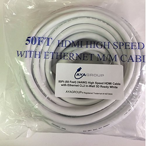 AYA 50Ft (50 Feet) 24AWG High Speed HDMI Cable with Ethernet CL2 In-Wall 3D Ready White