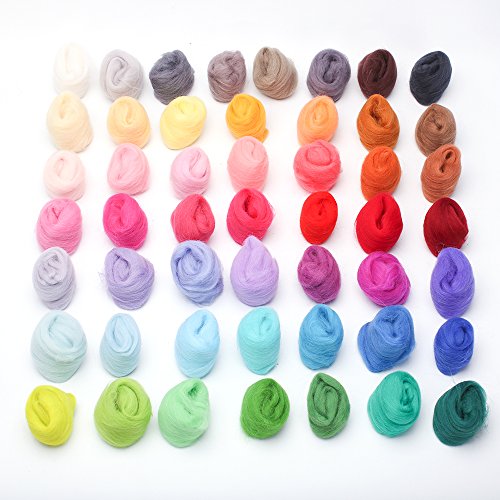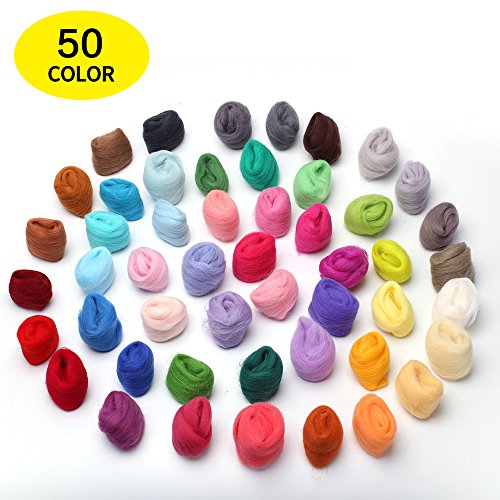 - Each package comes with 50 vibrant colors of wool fiber. Fluffy and soft, vibrant colors, ideal for hand-wool. Including the basic color: blue, green, red, orange, pink, yellow, grey blacks etc