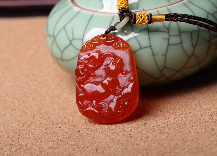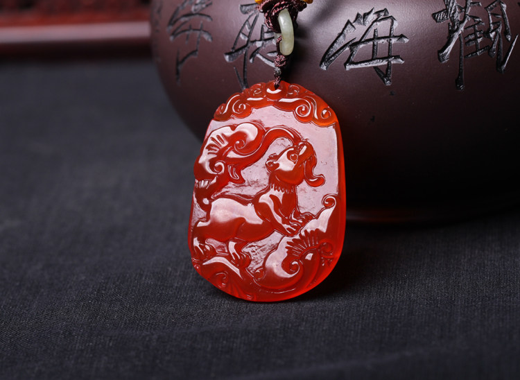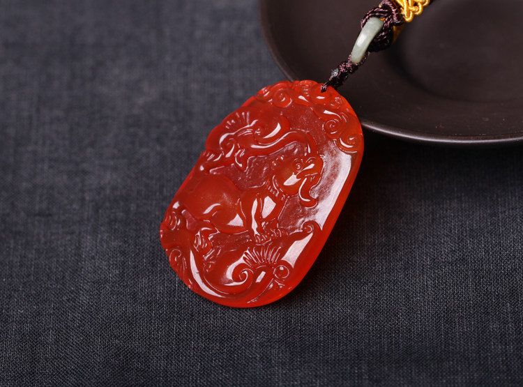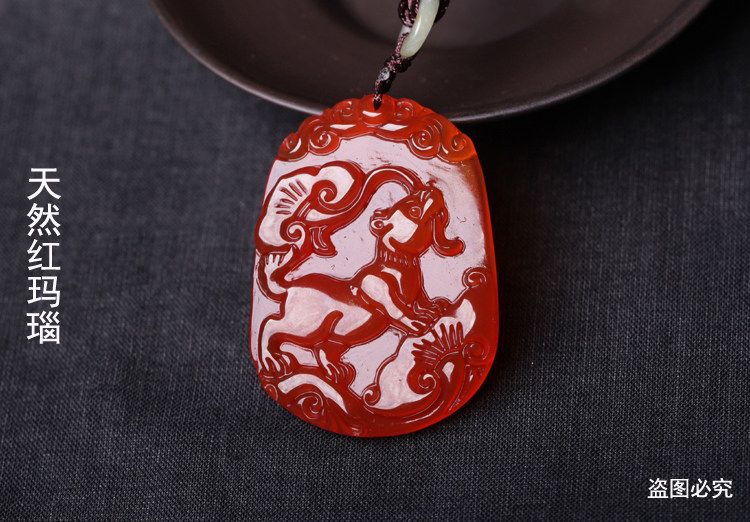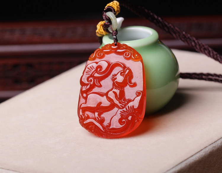 开光红玛瑙灵獒吊坠 属马人项链吉祥物