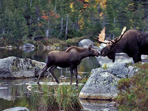 -. Title : Moose Nuzzle -Oil Painting On Canvas Modern Wall Art Pictures For Home Decoration Wooden Framed (20X16 Inch, Framed)
