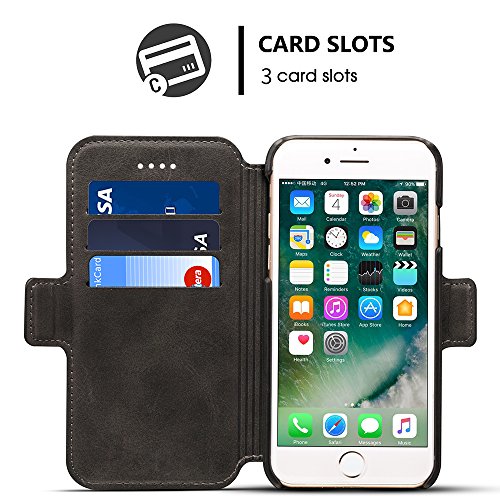 -. Feature : HIGH QUALITY LEATHER MATERIAL: This phone case for iPhone6/7 is made from premium leather material,which is comfortable to touch and grip,feathered good texture of outer layer and soft sleek lining entirely. Handcrafted from premium leather and the stitching is bold and reliable. Help to protect the back side and hold the phone tightly. / MULTIFUCTIONAL WALLET CASE:with 2 IN 1 DESIGN,this wallet includes 4 card slots which allows you to conveniently hold your ID card, credit card or cash. The smart Design allows you to easily flip the inner holder to access all your cards conveniently. / VIEW FROM ANY ANGLE & PERFECT CUT-OUT This wallet case can switched to a horizontal position and act as a firm stand. Kickstand design is for convenient free-hands use when watching movies or reading. / CONVENIENT TO USEFULL PROTECTION FOR YOUR PHONE Precise cutouts for speakers, earpiece, camera and other functional ports allow to access to all ports and functions easily.Smart Design allows you to easily flip the inner holder to access all your cards conveniently.Hidden magnet-closure secures the front cover. / WARRANTEE & CUSTOMER SERVICE:We trust that you will like the phone case. If you aren't 100% satisfied we will provide you with a refund or a free replacement - which ever you prefer.Just add it into your cart.