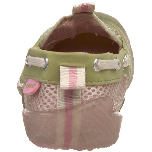 This boat shoe style water shoe has a toe and heel bumper for extra protection. Features a clear outersole that is anti-slip and non-marking, a breathable water flow mesh and stretch neoprene upper and a pull tabs for easy-on/off.