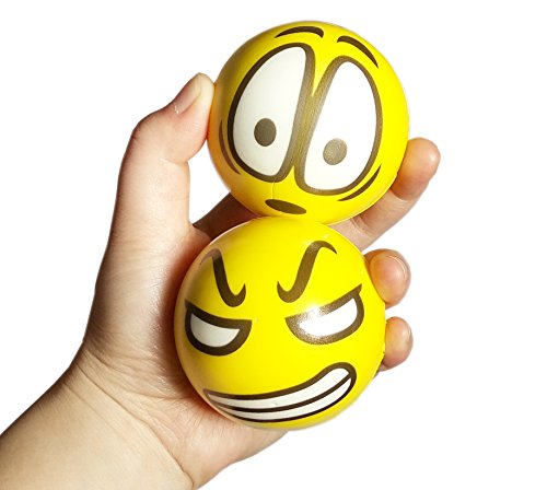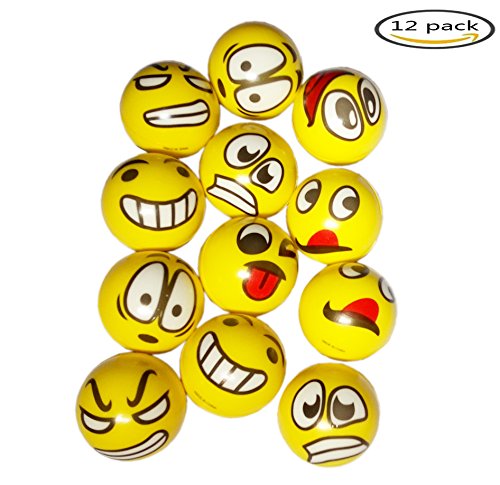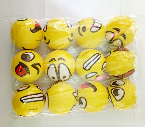 Sparkmi 12 Pack Emoji Foam Stress Balls, Hand Wrist Finger Exercise Stress Reliver, Soft PU Emoji Ball, Party Favor Toys, Yellow