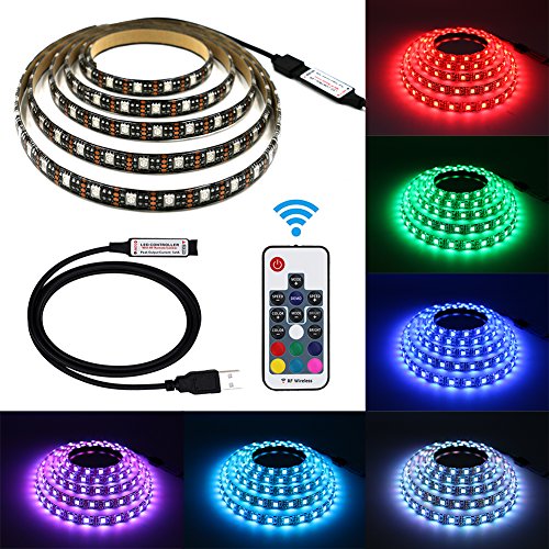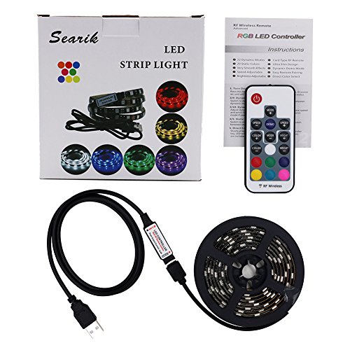 TV Backlight, Searik RGB LED Strip Light Bias Lighting Waterproof Flexible Background Lights USB Strips with 17 Keys RF Remote Controller for TV Background, PS4, Car, HDTV