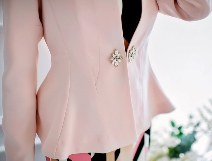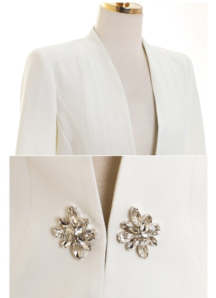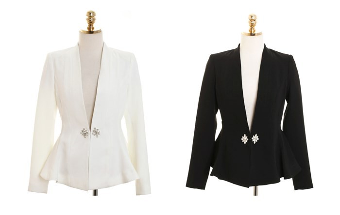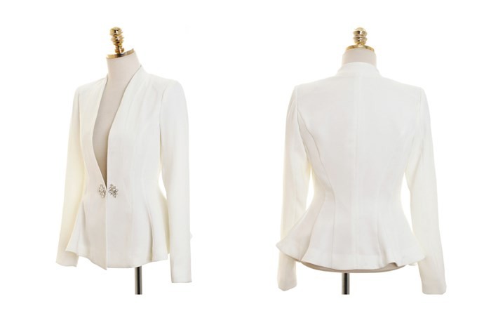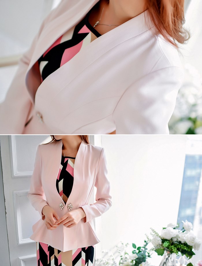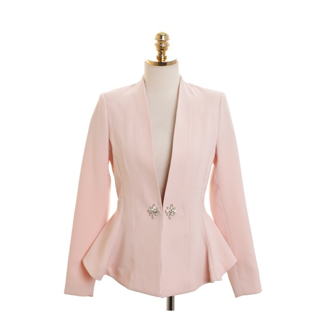 商品名:ジャケット ハーフ丈 ノーカラー 無地 きれいめ 通勤 フォーマル