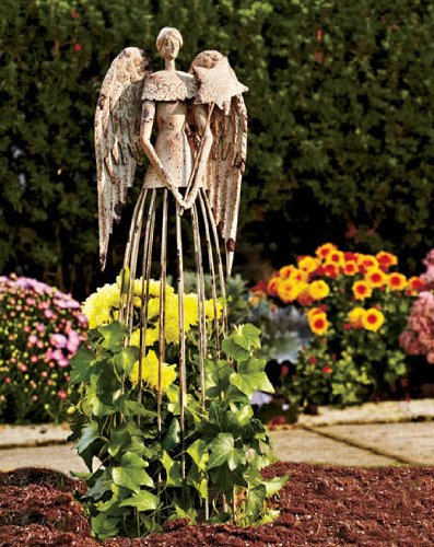 Garden Metal Angel Trellis - Antique Patina 25.5in Height