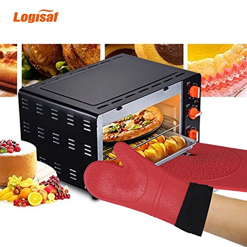 Logisaf Extra Long Silicone Oven Gloves Non-Slip Kitchen Oven Mitts Heat Resistant Cooking Gloves for Cooking, Baking, Barbecue Potholder(Red) 1 Pair