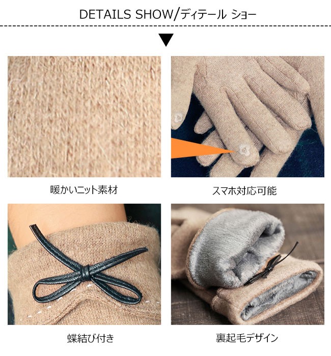 | 商品名 | 手袋 ニット手袋 レディース 防寒 裏起毛 裏ボア フリーズ ニット 暖かい スマホ対応 蝶結び てぶくろ 2017秋冬新作 |