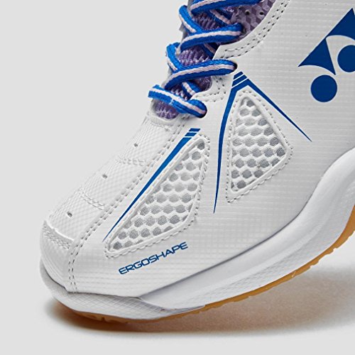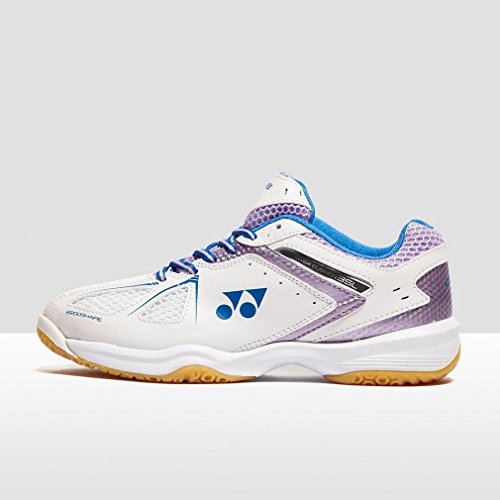 Binding : Apparel Product Description Ideal for players looking for a cushioned, stable fit and super support, the Power Cushion 35 Women's Indoor Court Shoes from Yonex are the perfect pair. Boasting well-ventilated uppers and lightweight EVA midsoles, the shoes ensure your feet stay cool, dry, and comfortable. Power Cushion technology injects energy and absorbs shock with every step you take, while Ergoshape technology enhances stability in the forefoot. - Polyester Mesh Uppers - EVA Midsole - Non-Marking Rubber Outsole 0