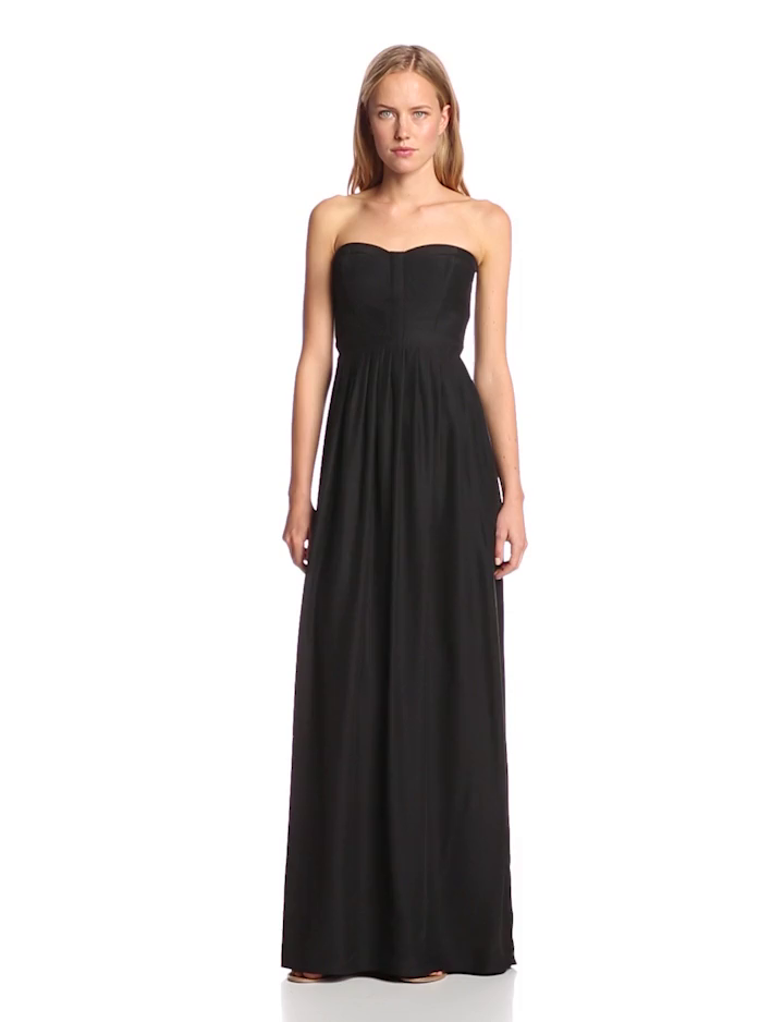 Sweetheart maxi gown in silk featuring sweetheart neckline, textured panels at bodice, and smocking at back
